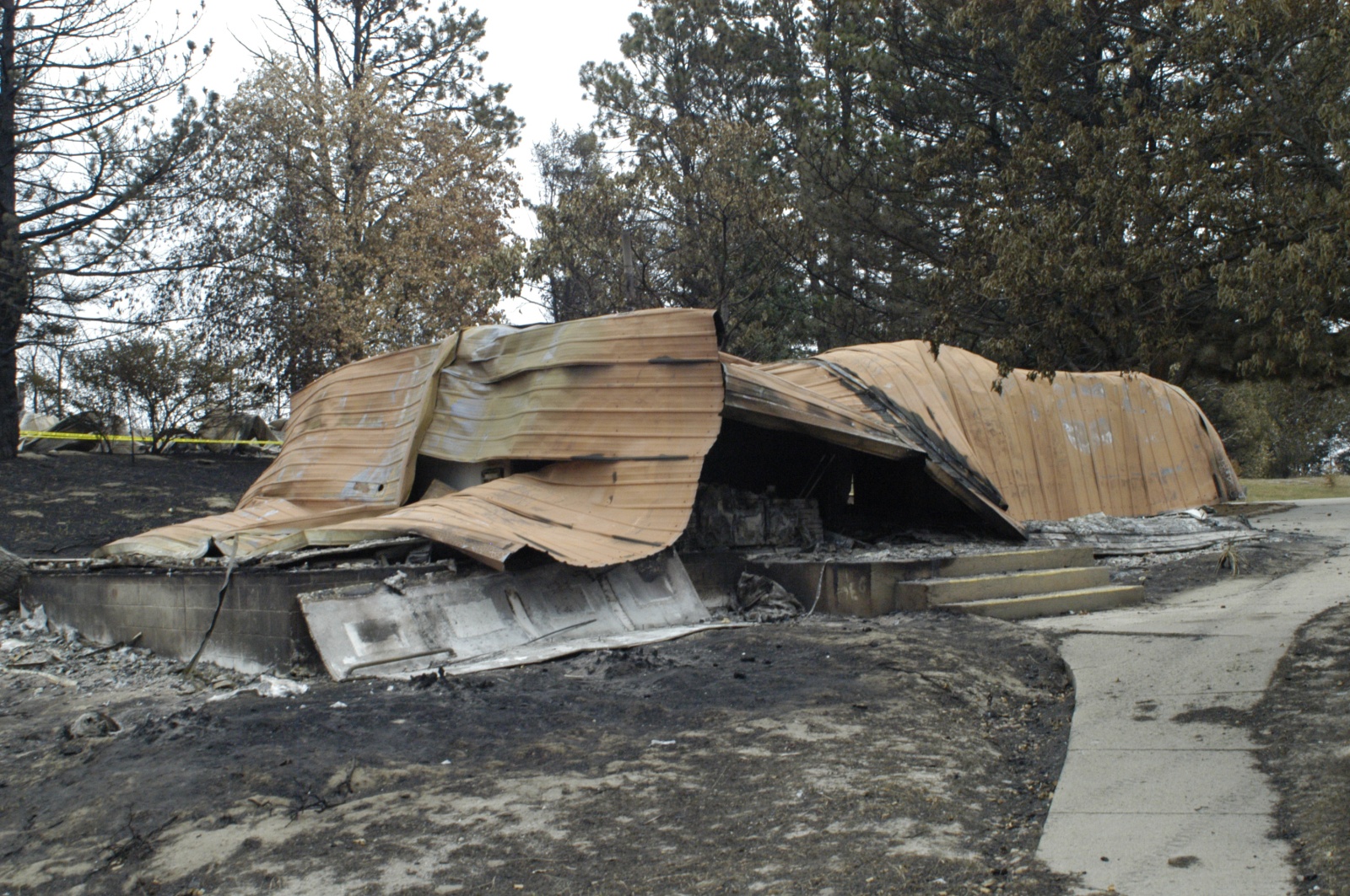 And not 30 feet away, the camp’s lodge, incubator, nursery, and cradle for central Nebraska’s collective memory, is a kingdom of ash and mangled tin, its borders grids of charred nails, still holding the shape of beams and walls long after they had burst into smoke.