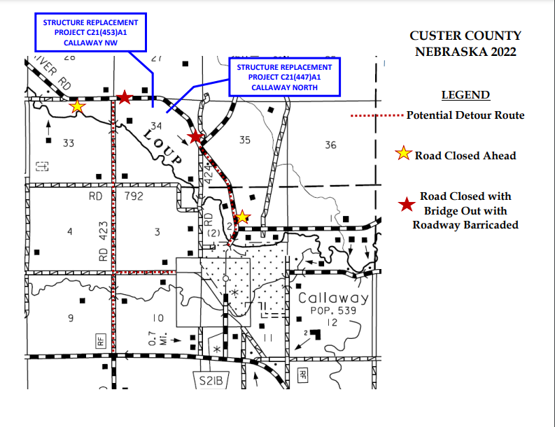 BROKEN BOW – According to the Custer County Highway Department, a section of Arnold River Road near Callaway will be closed beginning the first week in December.