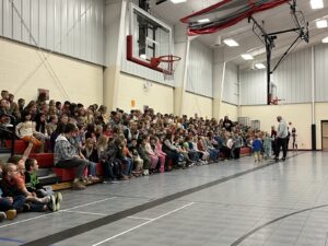 The bank is the first of its kind in central Nebraska, that is, specifically for elementary students, and to celebrate its arrival at North Park Elementary on Tuesday, nearly the entirety of the school’s 347 students, from kindergarteners to fifth graders, packed the gym to learn about saving money, grabbing cash, and just how the bank will work.