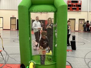 The celebration also included the opportunity for one student from each grade to snatch a few bucks for themselves from inside the money booth. Dollar bills were whipped around while the chosen students, one at a time, had ten seconds to grab as many as they could.