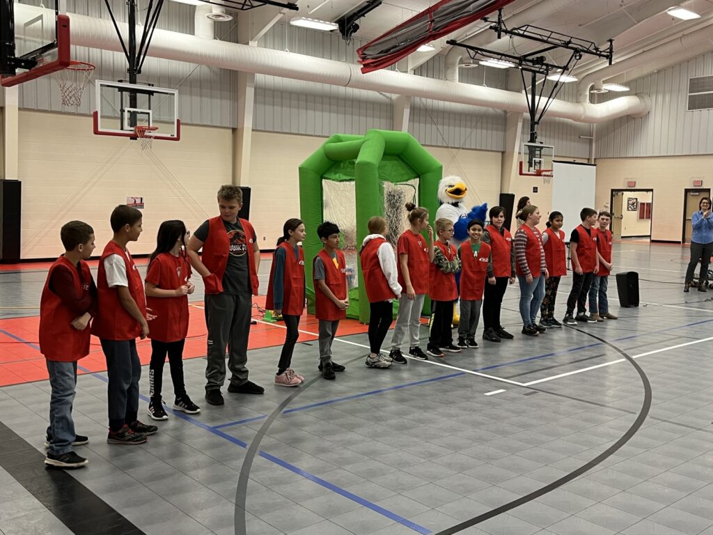 The celebration also included the opportunity for one student from each grade to snatch a few bucks for themselves from inside the money booth. Dollar bills were whipped around while the chosen students, one at a time, had ten seconds to grab as many as they could.