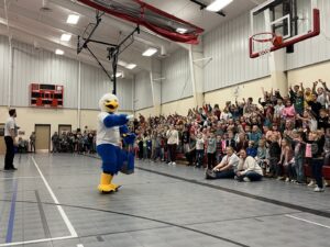 The bank is the first of its kind in central Nebraska, that is, specifically for elementary students, and to celebrate its arrival at North Park Elementary on Tuesday, nearly the entirety of the school’s 347 students, from kindergarteners to fifth graders, packed the gym to learn about saving money, grabbing cash, and just how the bank will work.