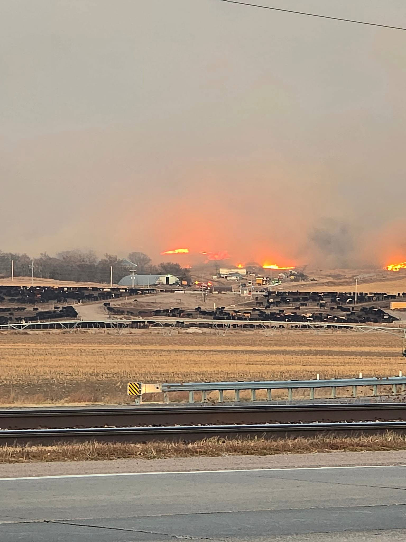 The fire approached the East Adams Land & Cattle lot on Thursday afternoon. (Photo courtesy of Chris Smith)
