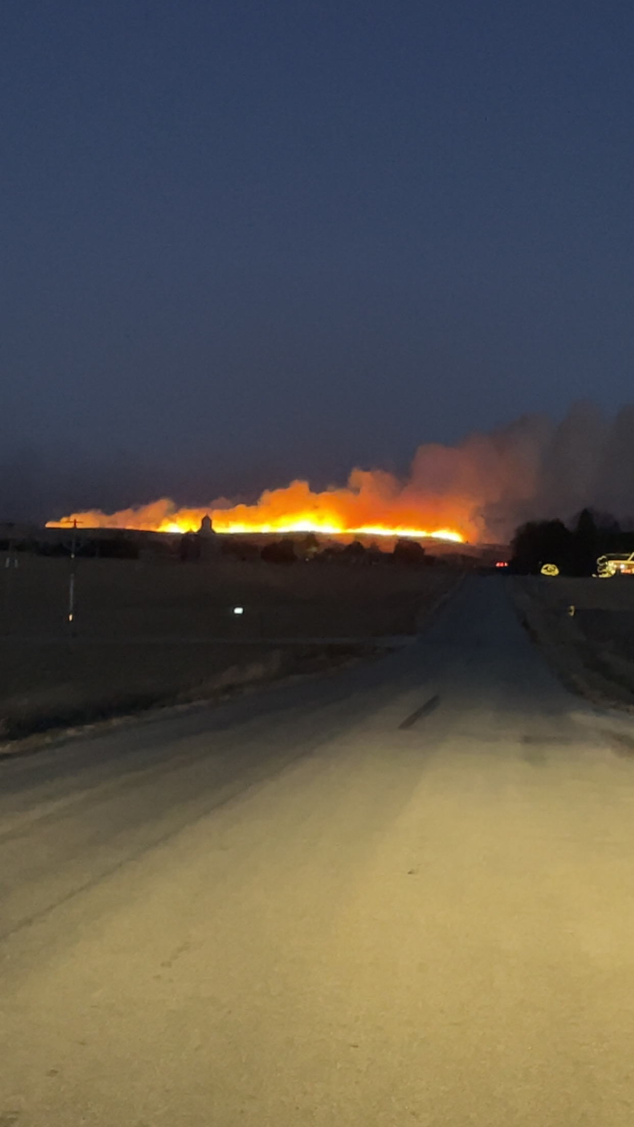 A view of the fire from Paulsen Road north of Broken Bow as the sun sets Thursday night (Photo courtesy Nicole Shipe)