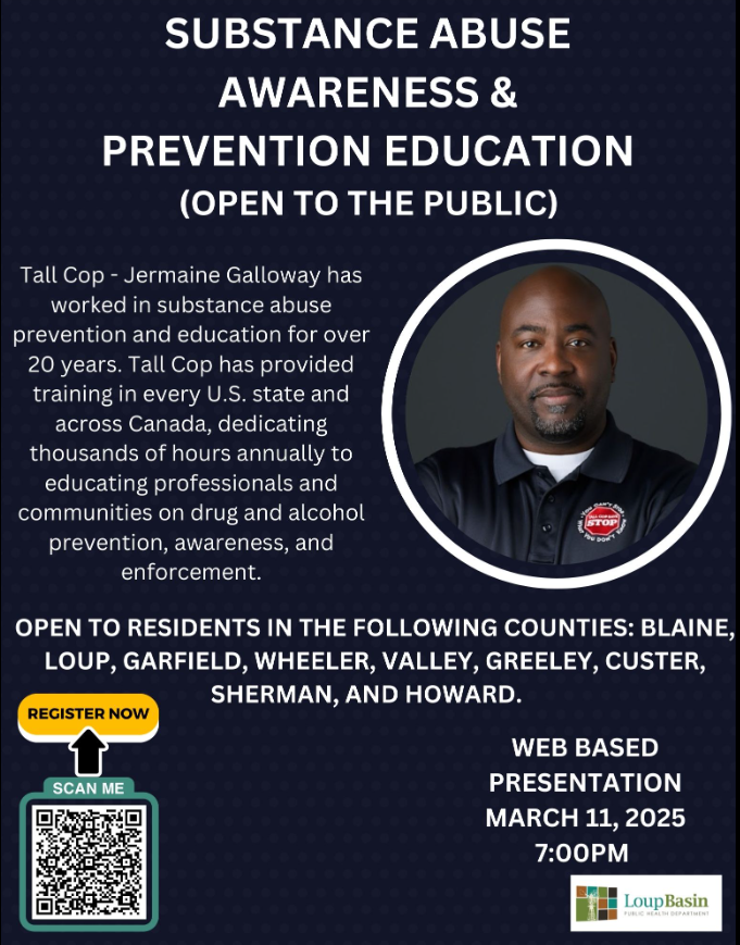 Loup Basin Public Health Department (LBPHD) is sponsoring an online substance abuse awareness and prevention presentation, set for Tuesday evening (March 11) at 7 PM.