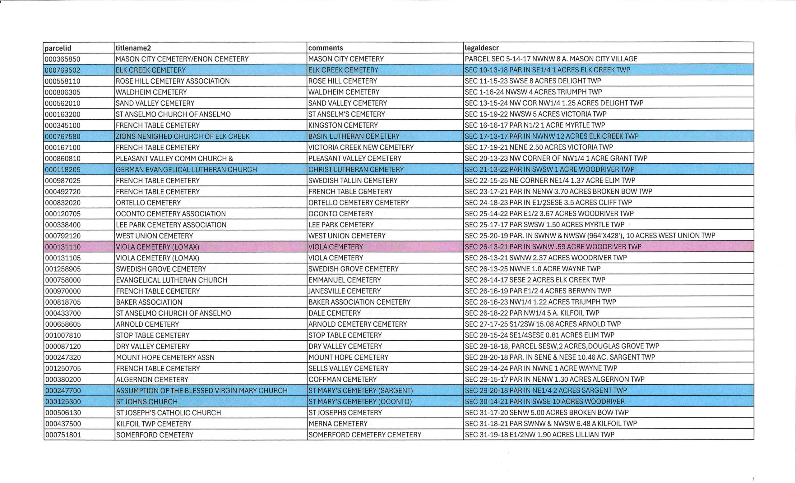 Custer County Assessor Elise Taylor addressed the board regarding an ongoing project: locating and identifying all cemeteries within Custer County. Taylor said her list continues to grow with her research, with assistance from the Custer County Historical Society. The current list as of Tuesday morning of more than 70 cemeteries can be seen at the end of this story.