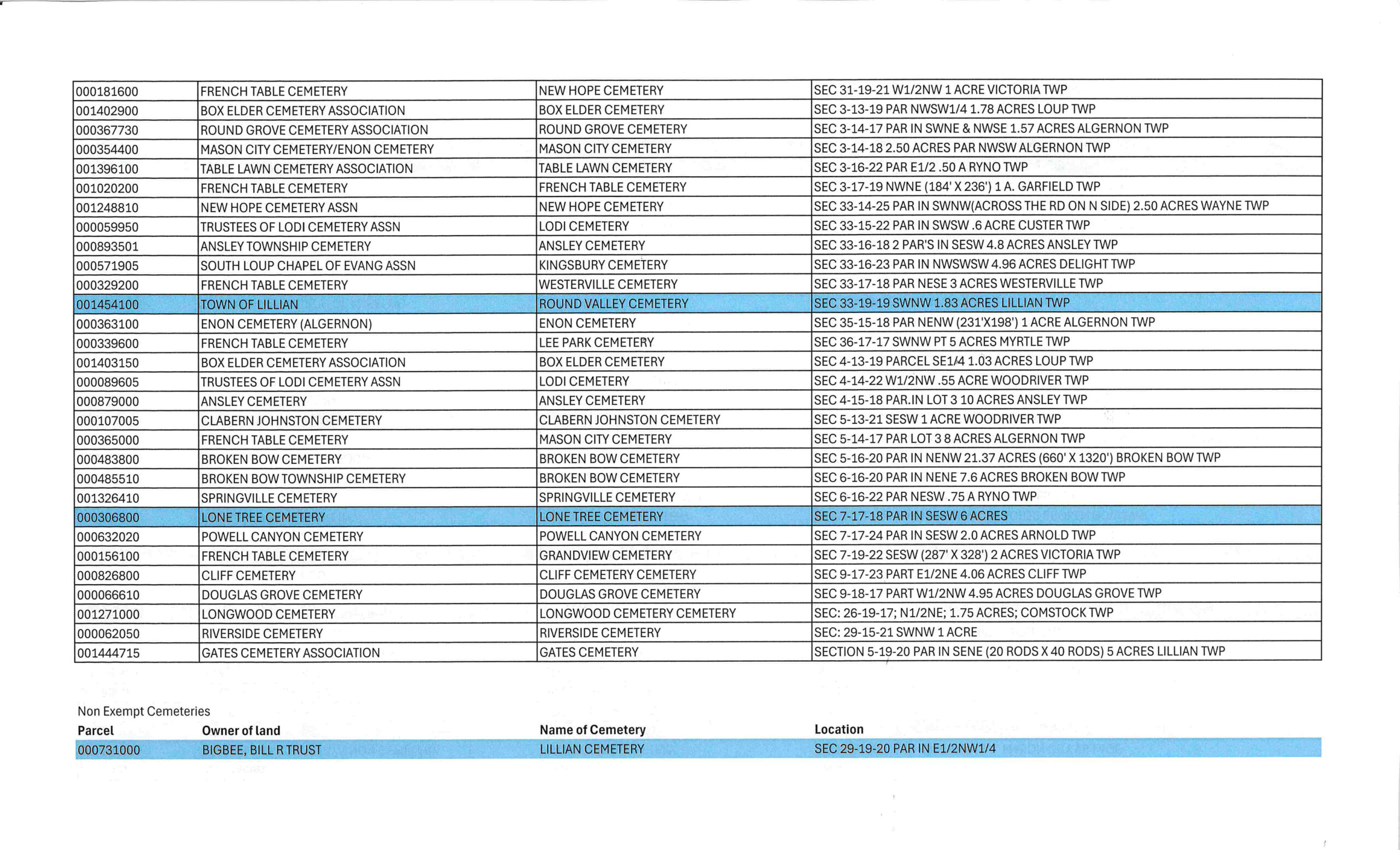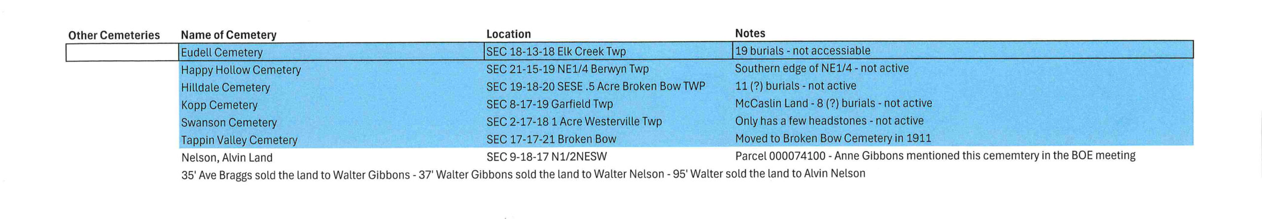 A quitclaim deed to the Broken Bow Township for a 2.45 acre parcel (S3-T15-R21) just east of town of Highway 2 was formalized with Chairman Chip Blowers’ signature approved by the board.
