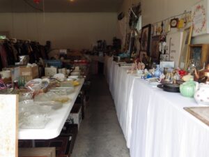 The sale will be held at Phyllis Bigbee’s house located at 1936 Myers Road. (Head west on Memorial Drive and north on Myers Road. The house is on the east side just before Paulson Road. Look for the blue tarps on the porch.)