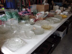 Garage sale items available include glassware, dishes and dish sets, flower vases, home décor, picture frames, holiday decorations, toys and games, books, clothes, shoes, electronics, a few new items still with the tags on them, collectibles, outdoor items, kitchen gadgets, jewelry, crafts, and much more! Items are organized by category and clothes organized by size.