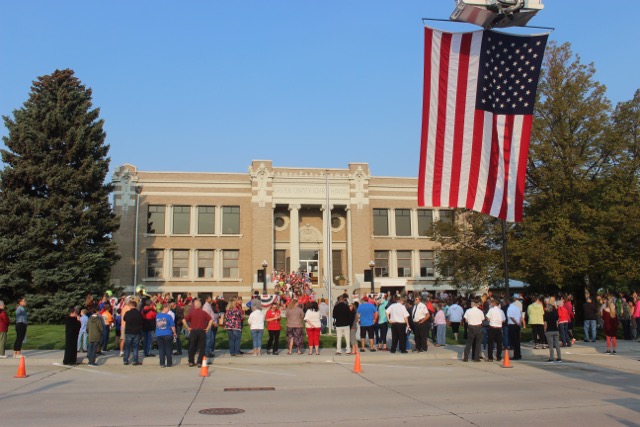 Broken Bow Public Schools held the annual Patriot Day Program on Thursday, September 9 at the Custer County Courthouse. The morning program included students reading the 9/11 timeline, the star-spangled banner from the Broken Bow High School Band, a procession of active military personnel and families, Heart of America performance by the North Park 4th graders, God Bless America sing-a-long, and many other patriotic events.