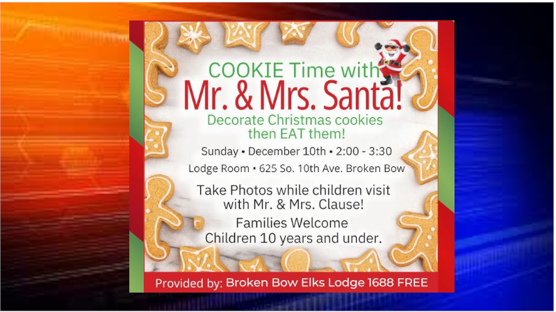 BROKEN BOW – Mr. and Mrs. Santa are making a special stop at the Elks Lodge in Broken Bow on December 10 from 2:00-3:30 p.m.