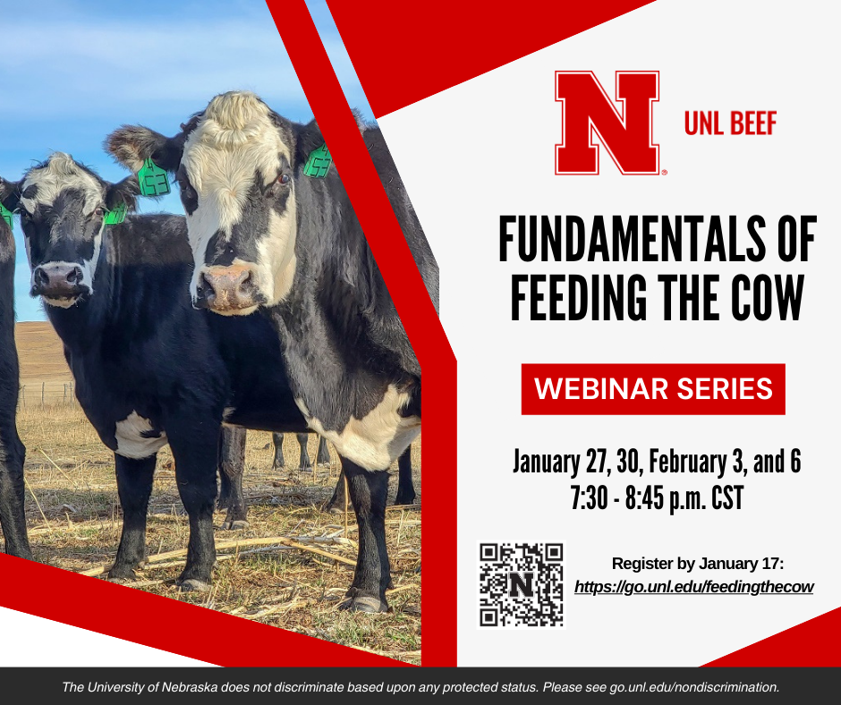 Nebraska Extension has announced two educational events that will take place later this month: the Fundamentals of Feeding the Cow webinar series and the UNL Winter Stocker Tour.