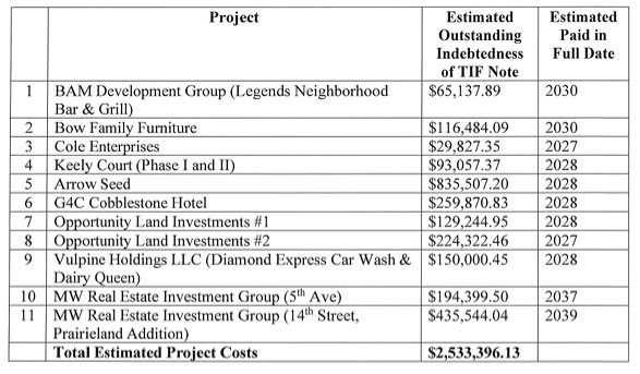 The Tax Increment Financing (TIF) Annual Report for 2025 was approved by council. The report outlines the progress of redevelopment projects in the city financed in whole or in part by the division of taxes commonly known as TIF. Each redevelopment project began after submitting an application and having the use of TIF funds approved by the city.