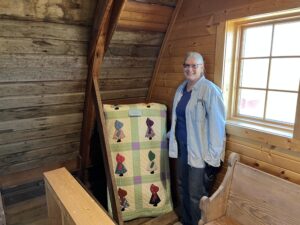 Eleven quilts, now counting the newly folded and draped Sunbonnet Sue in the attic’s corner, unfurl from rods, stands, and rafters; this year, Bryner says, the 60-member Custer’s Last Stitch Quilt Guild opted for a theme that would step away from the standard panel quilts.