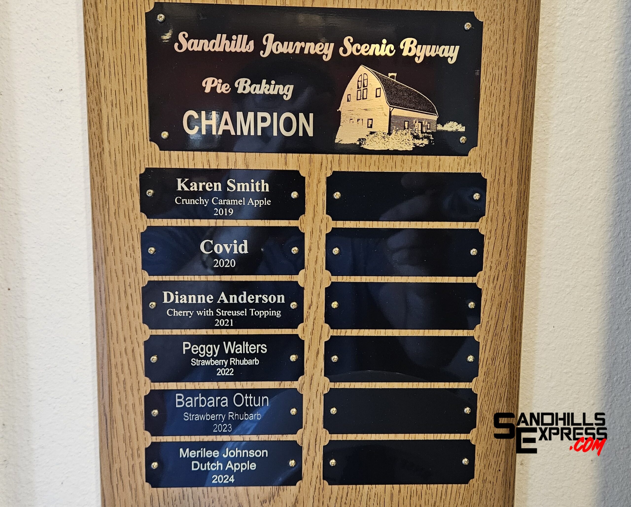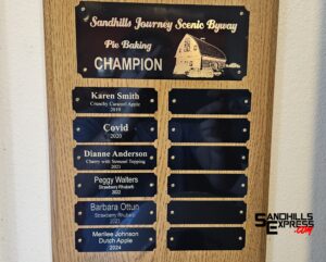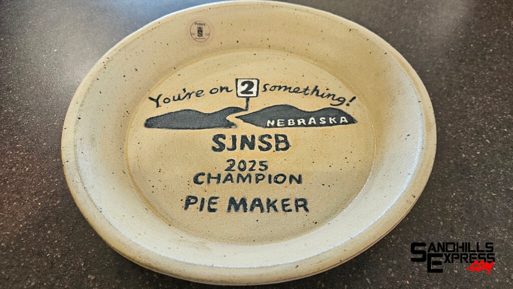 Contest winner Ottun will receive a specially-inscribed pie plate created by Amy Simonson Pottery and have her name added, again, to the plaque of Pie Contest Winners that hangs in the Sandhills Journey National Scenic Byway Visitors Center.