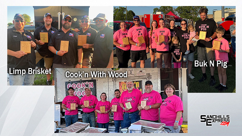 Twelve teams took part in competition this year including 3 Amigos BBQ, Anselmo Fire Department, Nelson BBQ, Limp Brisket, Ribzilla, Slow Poke BBQ, Double D’s BBQ, Buk-N-Pig, Halsey Hillbilly BBQ, Hooker County BBQ, Cook’n with Wood, and N2 BBQ.