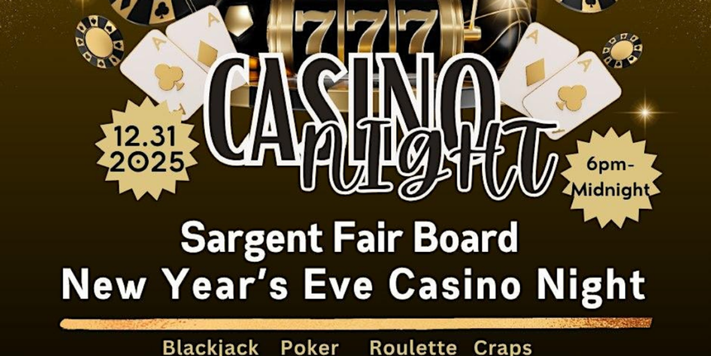 The Sargent Fair Board, in partnership with All In Party Rentals, will host a New Year’s Eve Casino Night to welcome 2026 on Wednesday, December 31 from 6:00 PM to 12 Midnight. Funds raised during the evening of winnings and excitement will go to support the 2026 Sargent Fair and Chokecherry Jamboree.