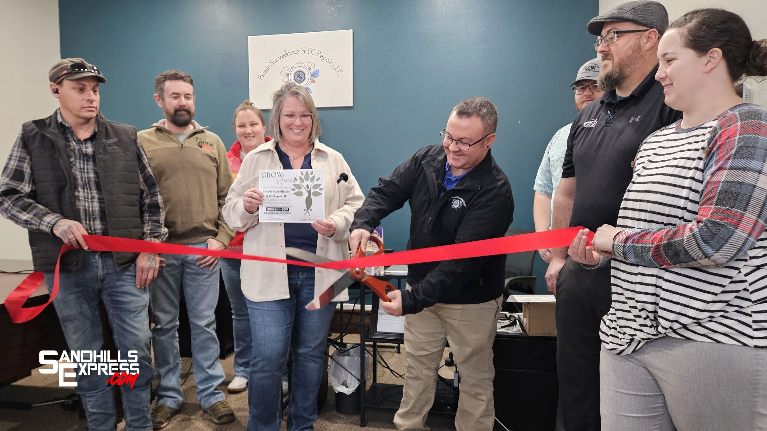Osterhoudt was presented with a Chamber Grow Award in a Ribbon Cutting ceremony to recognize the work he has done in expanding his business. With Prairie Surveillance and PC Repair, Osterhoudt provides business and residential security cameras, as well as home security panel systems. Osterhoudt also services Windows-based personal computers, along with network setup and troubleshooting.