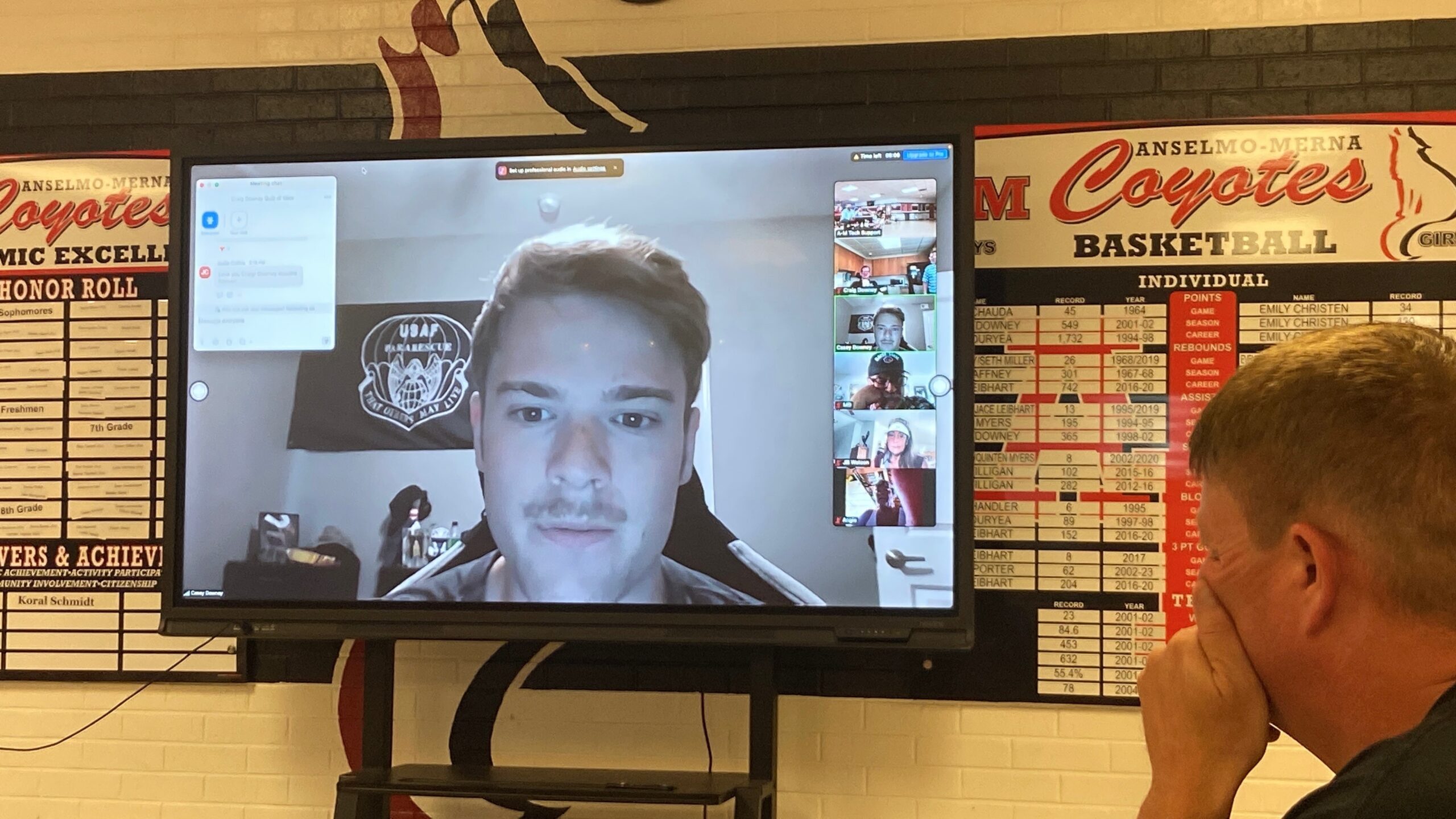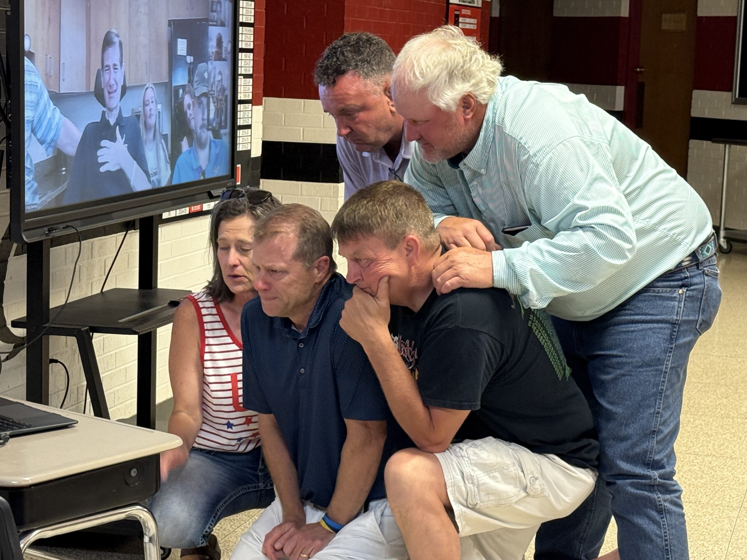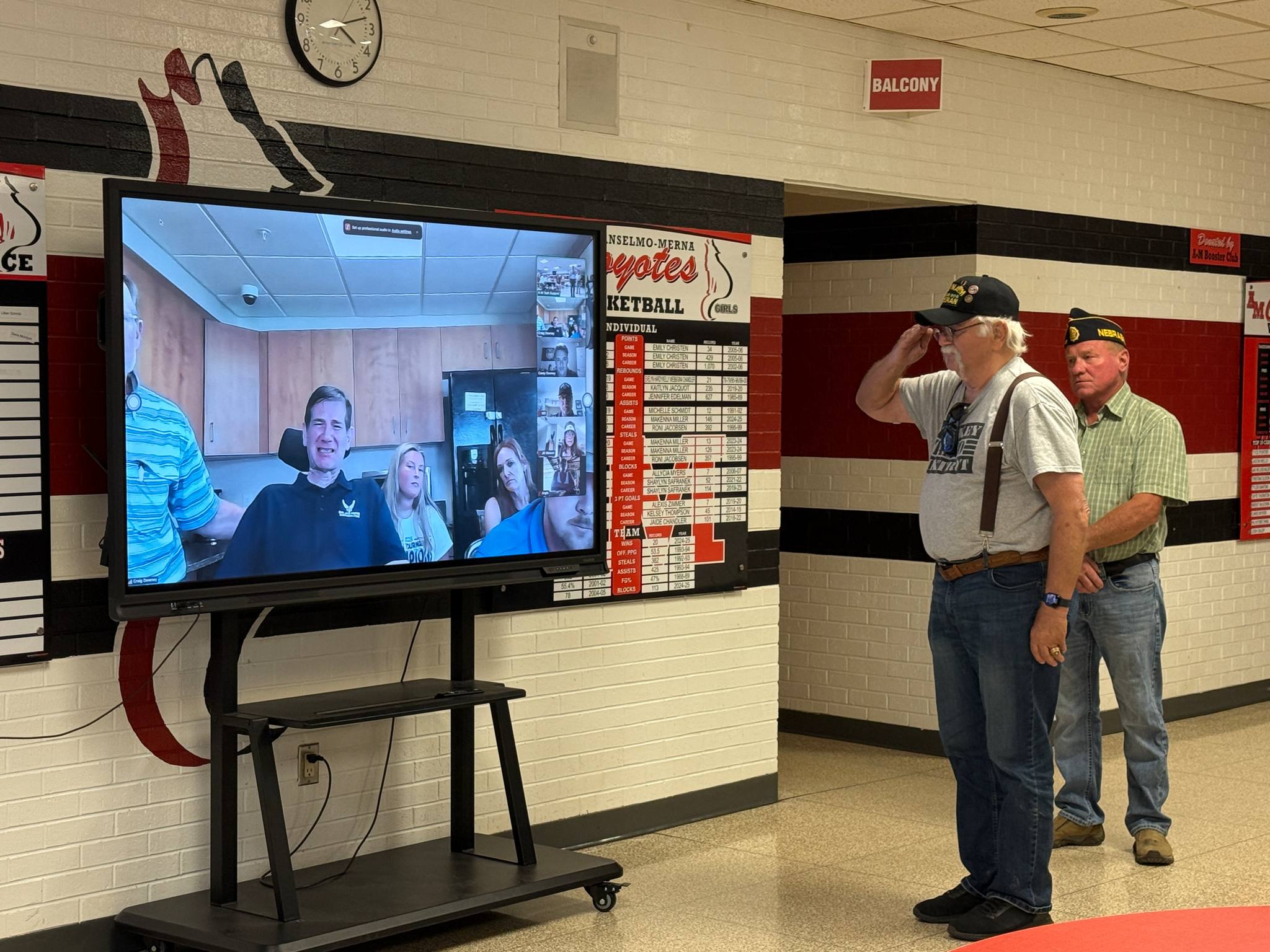 Downey had his QOV placed around his shoulders in Omaha alongside his son Cade and daughter Lydia. His son Casey, a Senior Airman in the Air Force in Little Rock, was among those who joined a virtual Zoom call. Several of Downey’s family members, classmates, and admirers joined in the heart of the Anselmo-Merna school where he graduated in 1990 for what would be an emotional presentation.