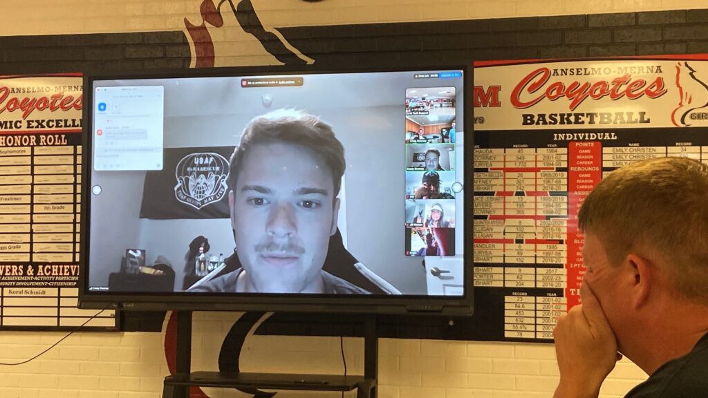 Downey’s youngest son Casey joins the presentation on Zoom. He is a Senior Airman at Little Rock Air Force Base