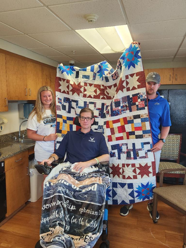 Craig’s daughter Lydia and son Cade display his Quilt of Valor