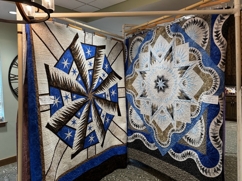 In total, 91 projects are on display including five hand quilted and five featuring hand embroidery. The largest quilt is 115″ by 115″, while the smallest is 6″ by 6″.