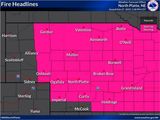 The National Weather Service in North Platte has issued a Red Flag Warning for Friday from 10am-8pm CT.