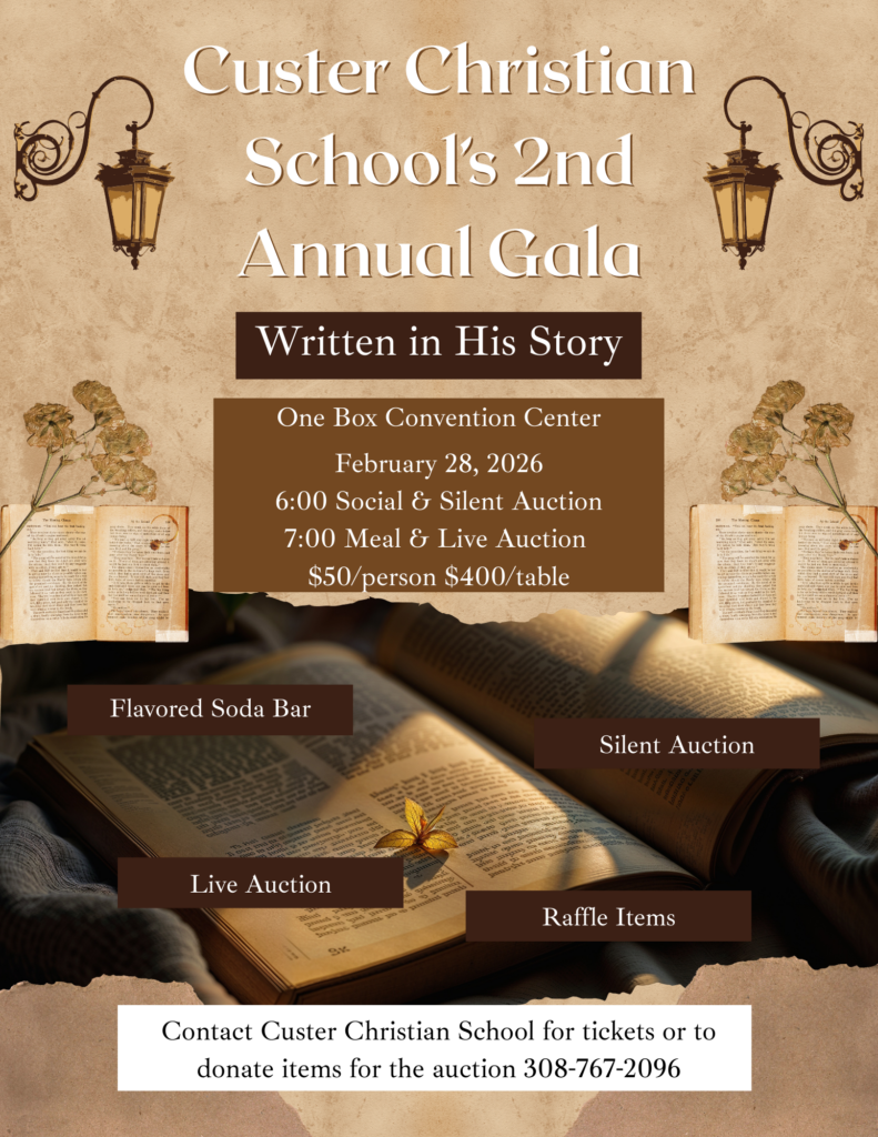 The Custer Christian School will be hosting their second-annual gala event, “Written in His Story” on Saturday, February 28 at the One Box Convention Center in Broken Bow.