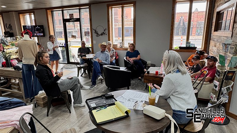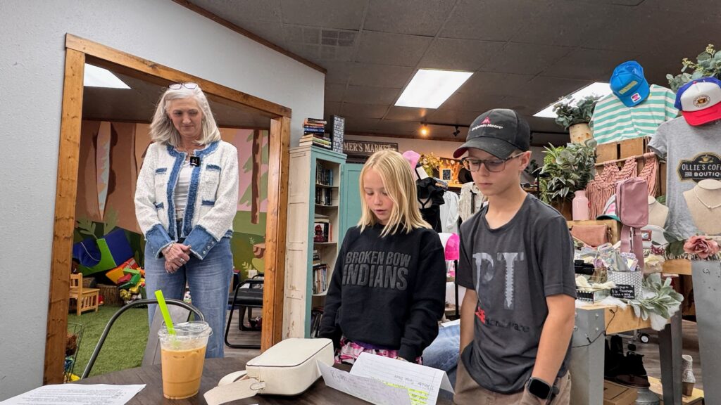 Senator Storer speaks with constituents at Ollie's Coffee & Boutique in Broken Bow