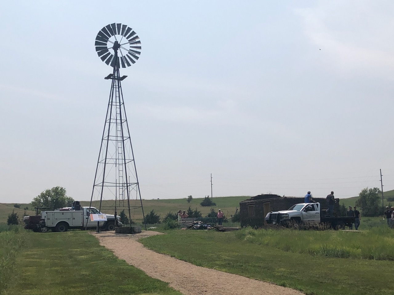 The building of the sod house has been in planning for years. The original idea of a sod house at the visitor center has been credited to Chard Hirsh when she told Terri Licking in 2009 at the grand opening of the visitor center that a sod house was needed there. 10 years later, in 2019, for the 10 year anniversary of the visitor center, they had a ground breaking ceremony, but due to little moisture, their shovels did not break much dirt. They postponed production until 2023 when the project was back on.