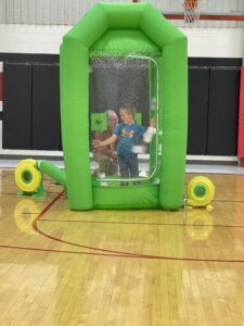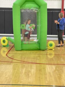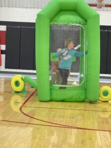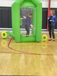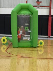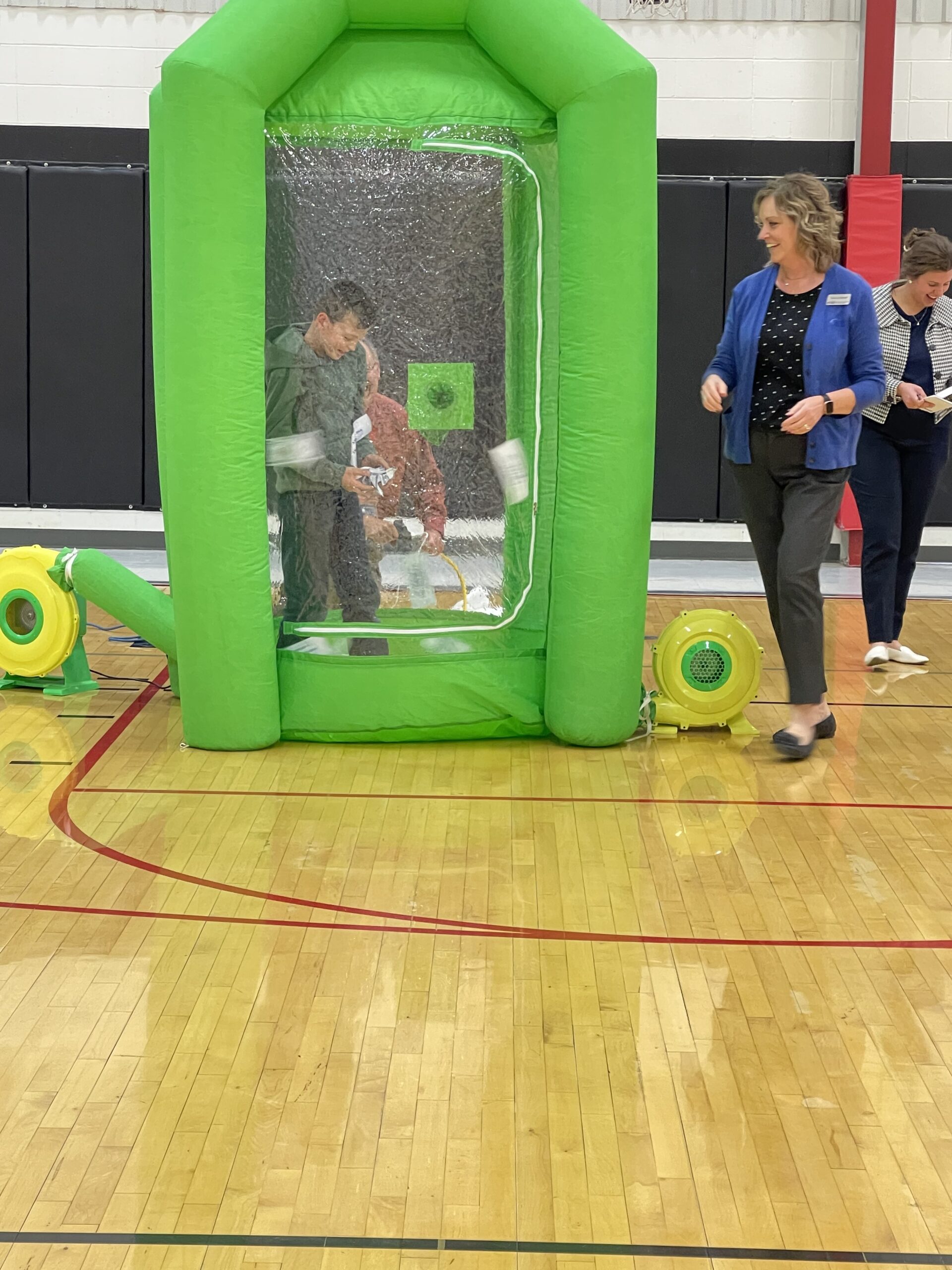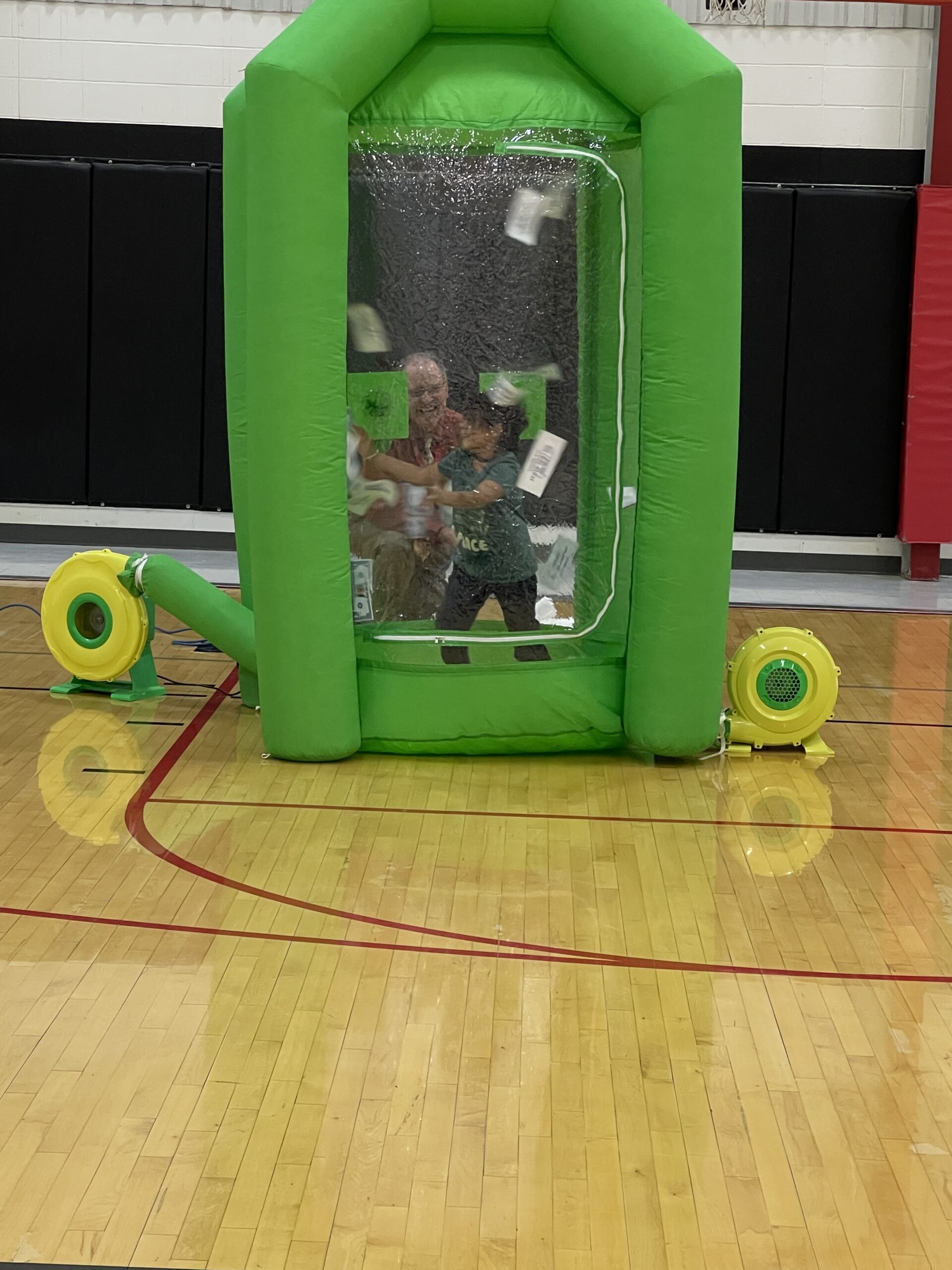 After the introduction of the student tellers, one student from each grade got picked to go into the cash cube. All of the money they receive, they get to keep.
