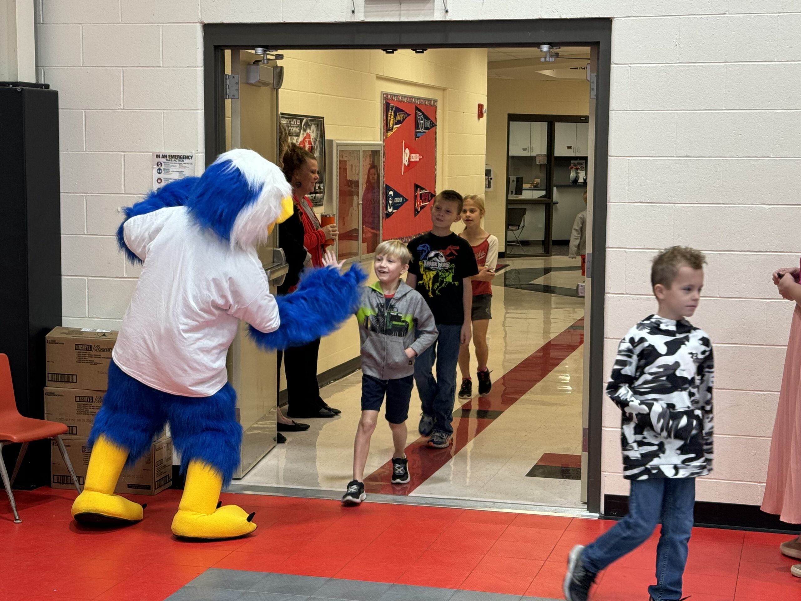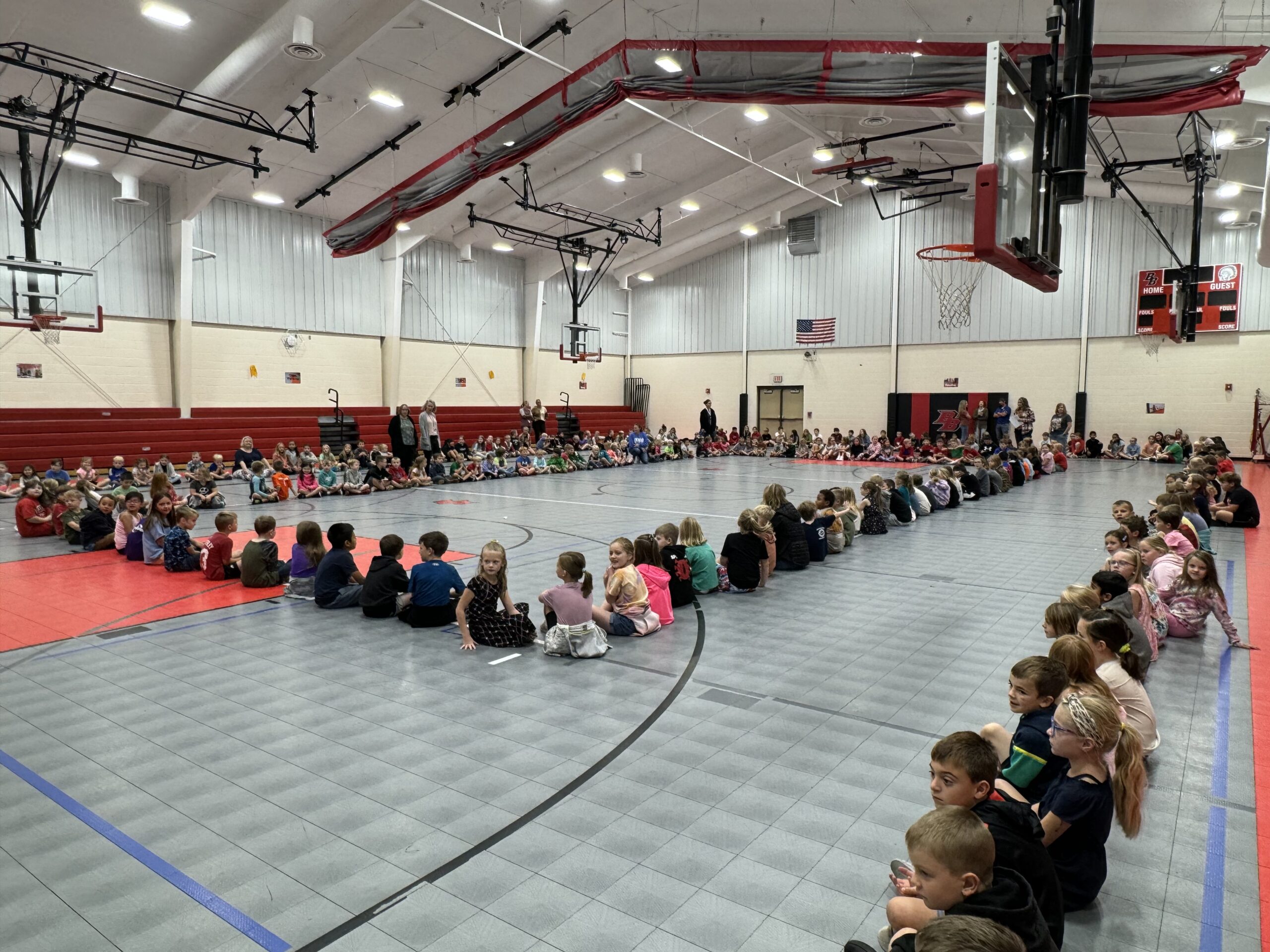 Students filed into the gym to meet the 5th grade tellers who will be providing them with customer service throughout the year. Their names were announced as they were sent on a circle through the room to cheers and music.