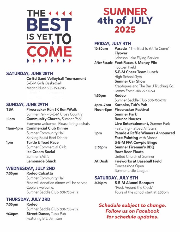 “This year, for the Sumner 4th of July, is ‘The Best is Yet to Come.’ And we just feel like, you know, that we are in the good old days, you kind of forget that. But there is more to come, and the best is yet to come. There’s more. There’s more coming down the pike,” said Sumner Commercial Club member Christian Triplett.