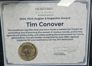 This year Conover was awarded the 2024 NDA Region 3 Inspector Award for making “a substantial impact on controlling and preventing the spread of noxious weeds, protecting agricultural productivity and safeguarding the environment for future generations.” The Supervisors agreed with this assessment and lauded Conover’s efforts on their behalf.