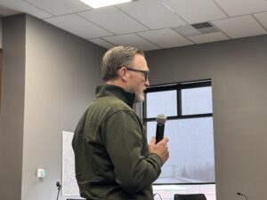“On behalf of the more than fifty Custer County citizens who have become known as R3, the Ryno Road Restoration citizens group, we respectfully request that before you vote on the 2025-26 highway plan…that one of you makes a motion, and another seconds it, to place at least Callaway northeast hot-mix, the Ryno Road project, onto the one-year portion of this immediate plan and then vote.”