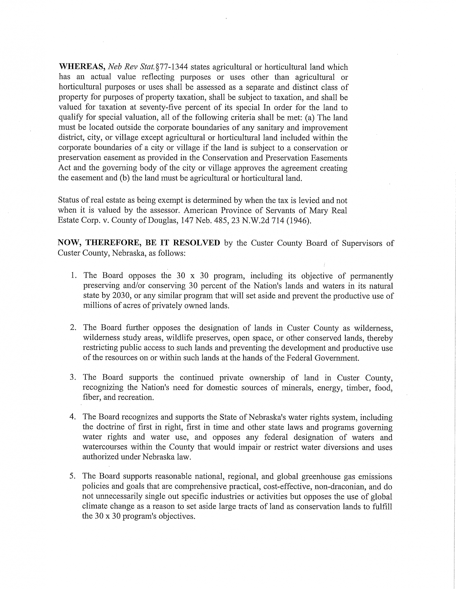 Also included in the resolution is making sure that if any conservation easements are approved they need to be in the public interest and also follow the Custer County Comprehensive Plan. The resolution passed 5-1 with District 7 Supervisor Doug Stunkel the lone ‘No’ vote.