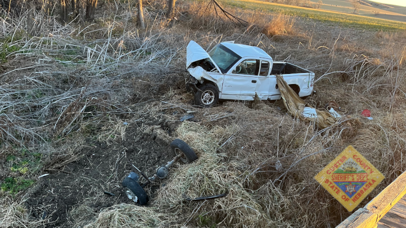 According to the accident report from the Custer County Sheriff’s Office, Ronald Myers, 55 of Taylor, was traveling east on Nebraska Highway 70 in a 2002 Dodge Dakota when the vehicle drove through the stop sign at the Highway 183 intersection and onto a dirt road. The Dakota drove off the dirt road to the north and into a ditch that leads to a creek. The vehicle then ramped the creek and impacted the east embankment with the front end of the vehicle. The impact caused the vehicle to spin around and come to a rest facing west at the top of the embankment.