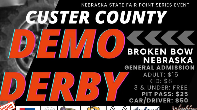 The Custer County Demo Derby is part of the Nebraska State Fair Demolition Derby Point Series Event. Broken Bow is the second competition location in the series. The series features demo derbies throughout Nebraska until its conclusion on September 1 at the Nebraska State Fair in Grand Island.