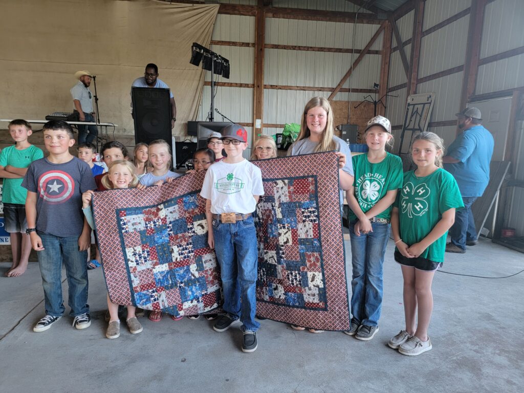 They learned he liked patriotic colors. The 4-Hers then convened in the basement of the Assembly of God church during the week to sew a quilt for Oakes using those colors.