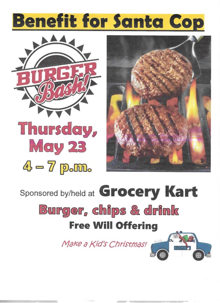 BROKEN BOW, NE – The charcoal will be lit Thursday afternoon at the Grocery Kart in Broken Bow for a Burger Bash benefit. Free will offering proceeds from the 4pm to 7pm event for a burger, chips, and drink will go to the local Santa Cop program.