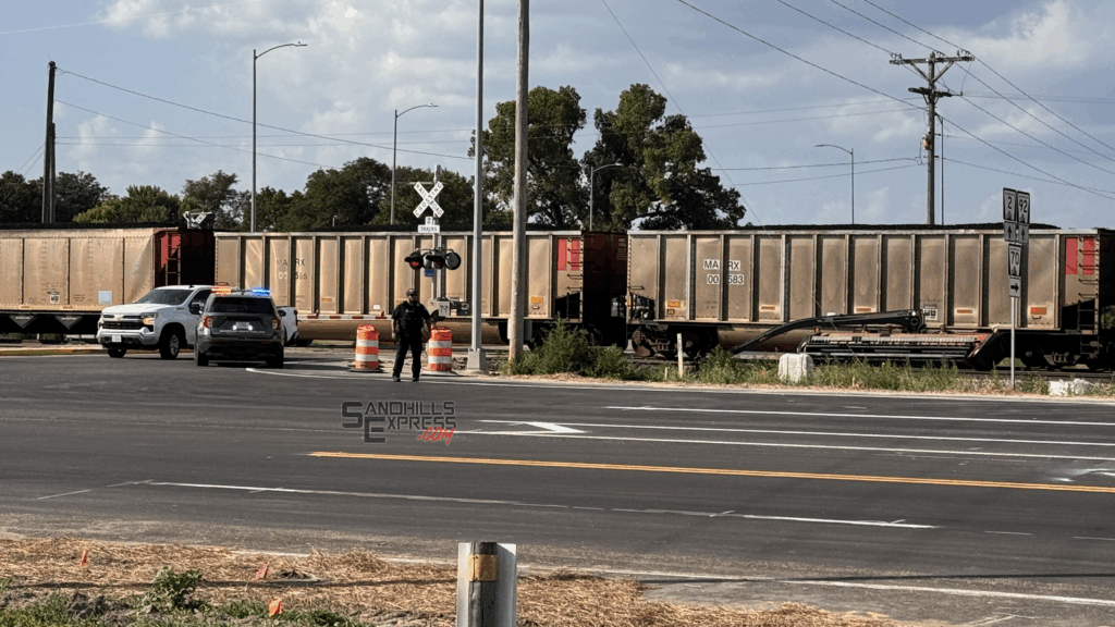 BROKEN BOW — A train came to a halt across all railroad crossings in Broken Bow after impacting a pickup pulling a swather across the tracks not long into the 5 PM hour Wednesday evening.