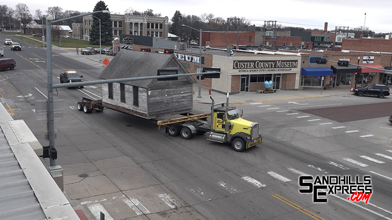 CUSTER COUNTY, Neb.— A building aged more than 140 years traveled to a new home in Custer County on Tuesday. Citizens of all ages made their way to the roadside to watch the District 58 West Dale School go by during its nearly 20 mile trip from northwest of Merna to the Sandhills National Journey Scenic Byway Visitor Center east of Broken Bow.
