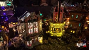 Every year, in a full-day process, an entire lilliputian town town begins to emerge in Wenquist’s garage. She and her family place and rearrange the buildings with whimsical holiday-themed names until they are finally satisfied.
