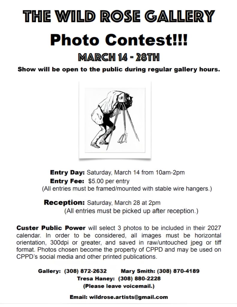 Those who participate can say they did so in the contest’s first year, which is separate from a large show they hold in August each year. The gallery is partnering with Custer Public Power District (CPPD), as photos meeting the CPPD’s own photo contest rules will be selected to be included in the CPPD 2027 calendar (horizontal orientation, 300dpi or greater, jpeg or tiff file format, taken in CPPD service area).