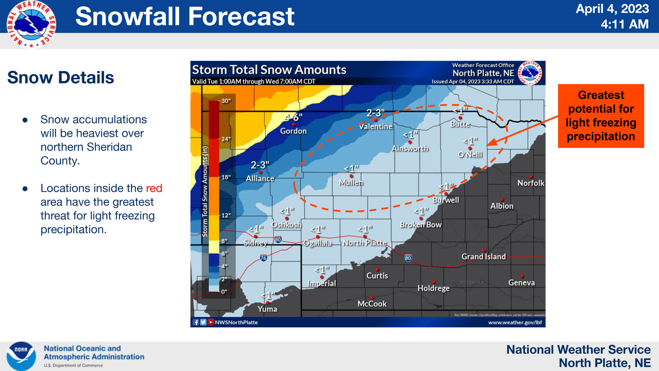 A strong storm system will move through Nebraska Tuesday into Wednesday, bringing strong winds, snow, light freezing precipitation, and cold temperatures. Temperatures will primarily favor snow, but a period of light freezing drizzle or a wintry mix may be possible.