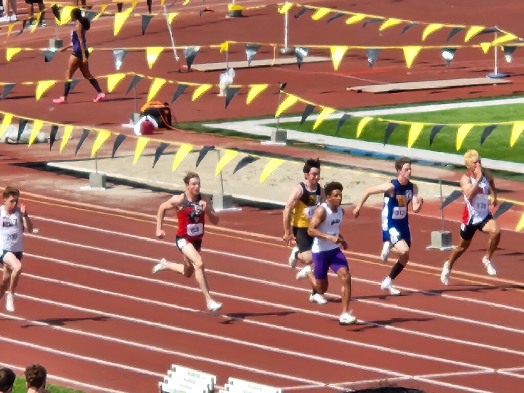 Cruze Safranek of Broken Bow was the state runner up in the Class B boys 100 meter dash. Safranek’s time was 10.80 seconds to finish second. The 100 meter dash was won by the defending state champ and current state record holder in the event Ethan Baessler of Blair who posted a winning time of 10.51 seconds.