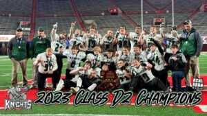 Sandhills/Thedford played for the Class D2 state football championship for the third time in the last four seasons. After falling just short the previous two times in the championship game, the Knights would not come up short in 2023. After surviving an all area semifinal against South Loup, who defeated S/T in the regular season, the Knights would face Wynot for the state title. It was a dominating performance by Sandhills/Thedford and a record setting day for quarter back Kyle Cox. Sandhills/Thedford finished with 493 total yards of offense (all on the ground) and 486 of those were gained by Cox which set a new Class D2 record for most rushing yards in a state playoff game. Final score S/T 50, Wynot 12.