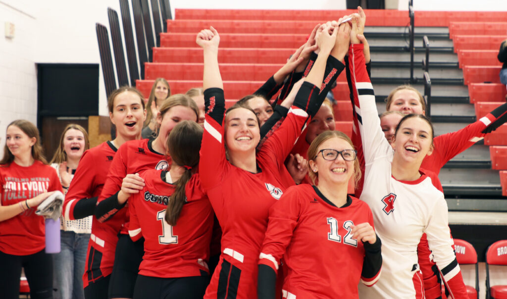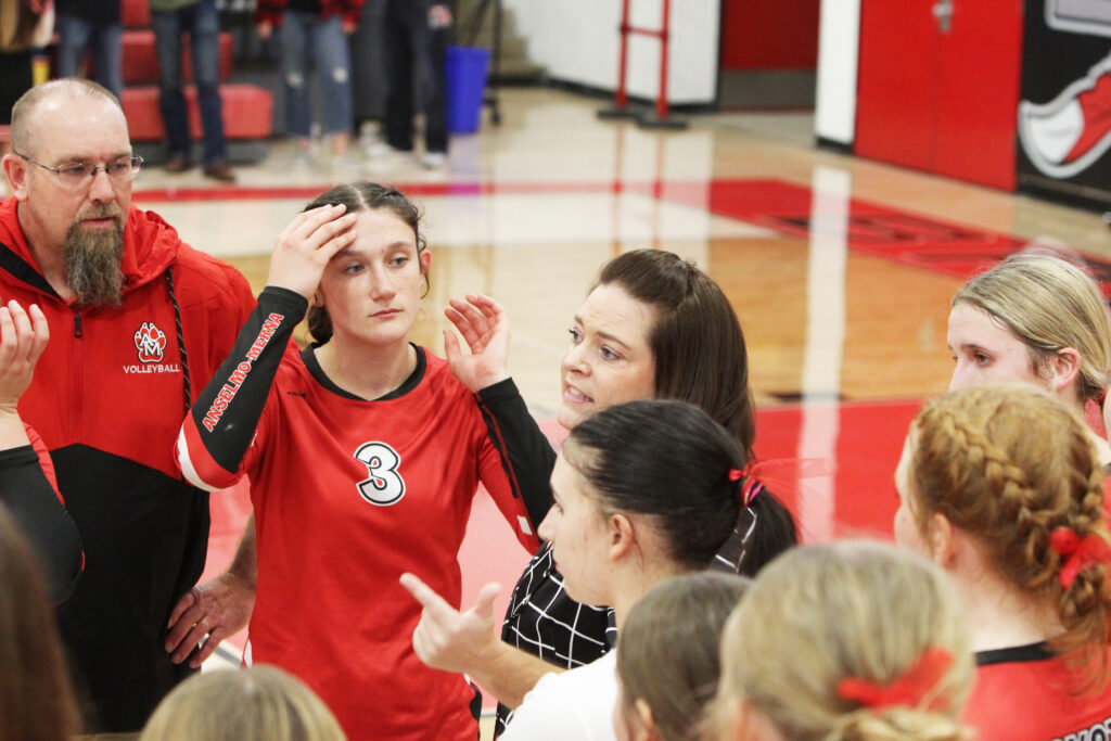 Anselmo-Merna made their first ever appearance in the championship match of the Mid Nebraska Activities Conference volleyball tournament on Saturday and they made the most of it capturing their first ever MNAC tournament title. Anselmo-Merna advanced to the championship match with a straight set win earlier in the day over Mullen (25-17, 25-19, 25-22). AM would face defending tournament champion Sandhills/Thedford in the final. The Lady Knights advanced to the championship match by knocking off top seed Brady 3-1 in the semifinals (25-18, 25-17, 24-26, 25-19). In the championship match, Sandhills/Thedford took the opening set 25-20 but AM came back and won back to back deuce games winning 25-23 in the second set and 28-26 in the third. The Lady Coyotes would close it out in the fourth set winning 25-19 to claim the championship and collect their 15th win of the season.