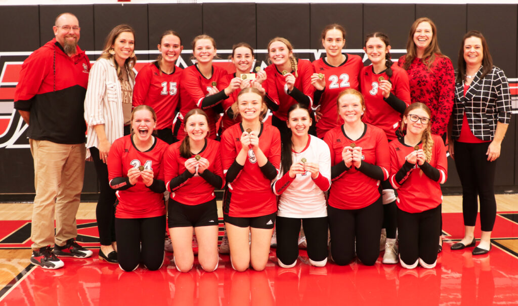 Anselmo-Merna made their first ever appearance in the championship match of the Mid Nebraska Activities Conference volleyball tournament on Saturday and they made the most of it capturing their first ever MNAC tournament title. Anselmo-Merna advanced to the championship match with a straight set win earlier in the day over Mullen (25-17, 25-19, 25-22). AM would face defending tournament champion Sandhills/Thedford in the final. The Lady Knights advanced to the championship match by knocking off top seed Brady 3-1 in the semifinals (25-18, 25-17, 24-26, 25-19). In the championship match, Sandhills/Thedford took the opening set 25-20 but AM came back and won back to back deuce games winning 25-23 in the second set and 28-26 in the third. The Lady Coyotes would close it out in the fourth set winning 25-19 to claim the championship and collect their 15th win of the season.