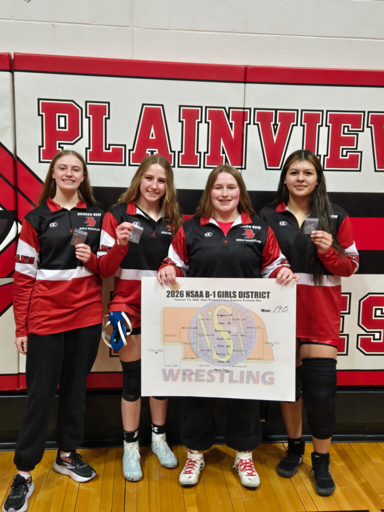Girls district wrestling tournaments were held across the state over the weekend. The top four wrestlers in each weight class from each district qualified for the girls state wrestling tournament later this month in Omaha. Broken Bow qualified four for state from the B-1 district tournament held at Plainview. Ida Bumgarner of Broken Bow was the B-1 district champion at 190 lbs. Bumgarner won by a 10-3 decision over Ana Aguirre Flores of West Point Beemer in the championship match. Stayci Medina Lopez of Broken Bow qualified for state as the runner up at 170 lbs. It was an all area final at 170 as Medina Lopez faced defending state tournament champion Rylee Kursave of Arcadia/Loup City. Kursave won by fall to win the district title and advance to state. Zoe Jones of Broken Bow qualified for state as the runner up at 115 lbs. and Lailah Jones qualified for state placing fourth at 120 lbs. Broken Bow finished fourth in the B-1 district team standings with 82 points. Brett Buss of Burwell qualified for state out of the B-1 district finishing fourth at 235 lbs.